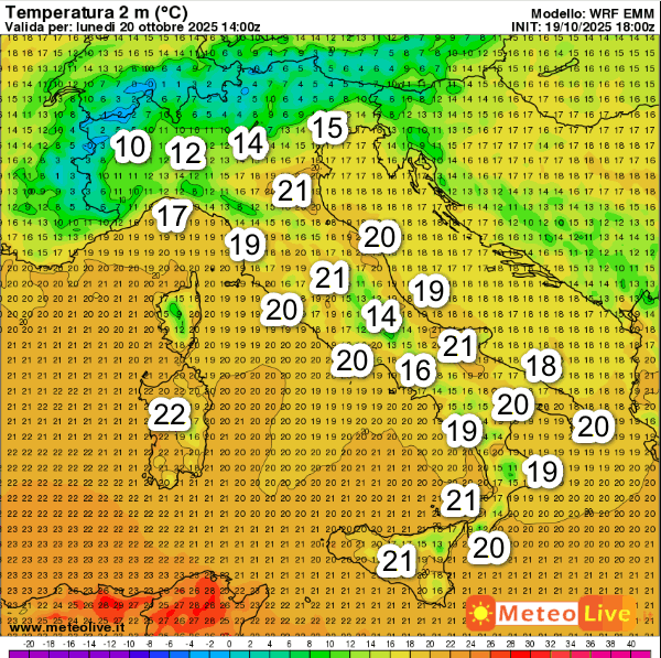 Le temperature delle ore 14 di lunedi 20 ottobre