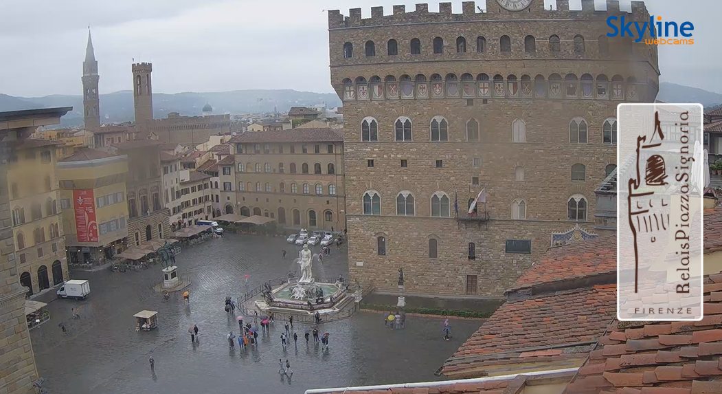 Risveglio instabile sul capoluogo fiorentino ma primi temerari turisti già in pista, come vediamo dalla webcam, sulla Capitale invece splende il sole e c’è già il pienone a Fontana di Trevi: