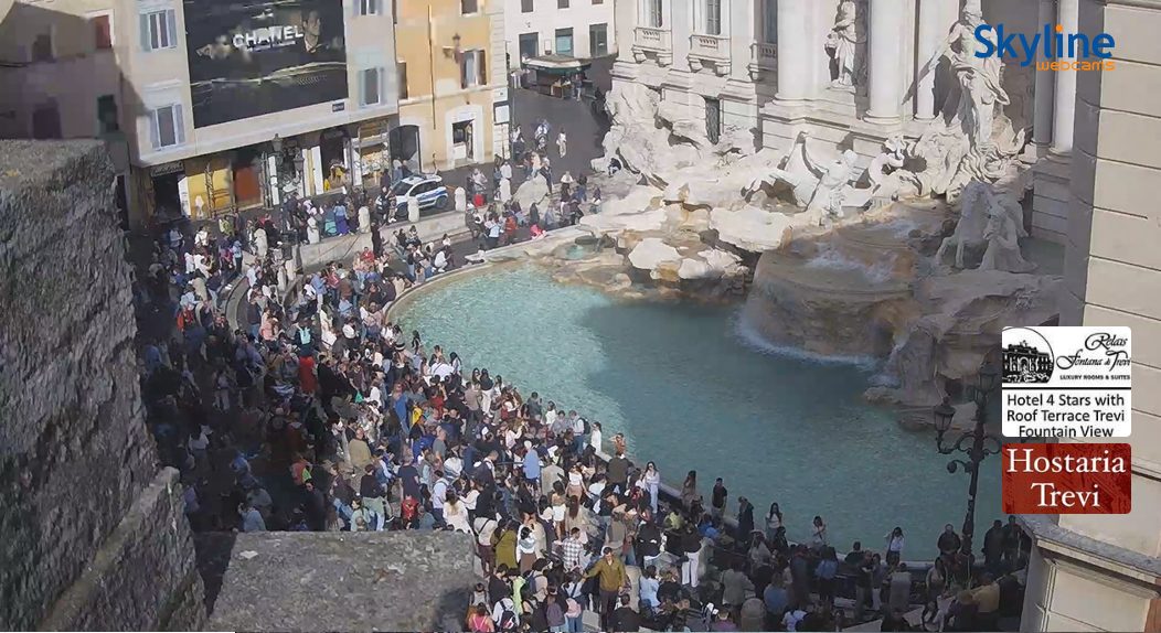 Qui sopra la situazione a Firenze, mentre sotto ecco le immagini che ci giungono da Fontana di Trevi, assolata e già brulicante di turisti esaltati dalla bellezza del monumento: