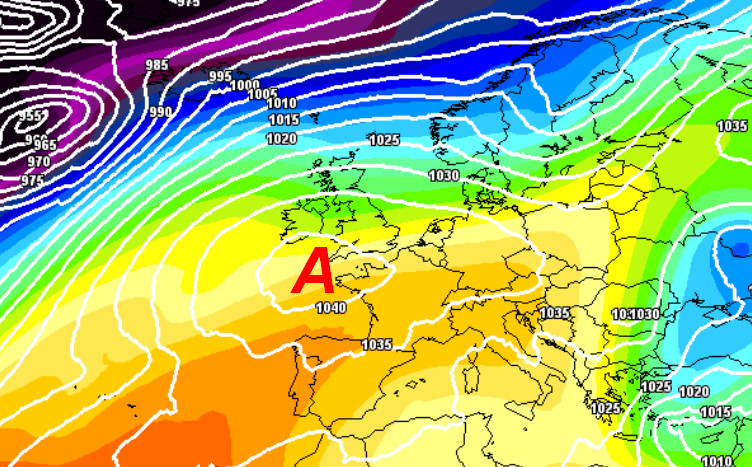 Ecco l’apice della breve fase anticiclonica che sta interessando l’Europa in questi giorni. La avremo nelle ore centrali della giornata di domani, mercoledi 5 gennaio: