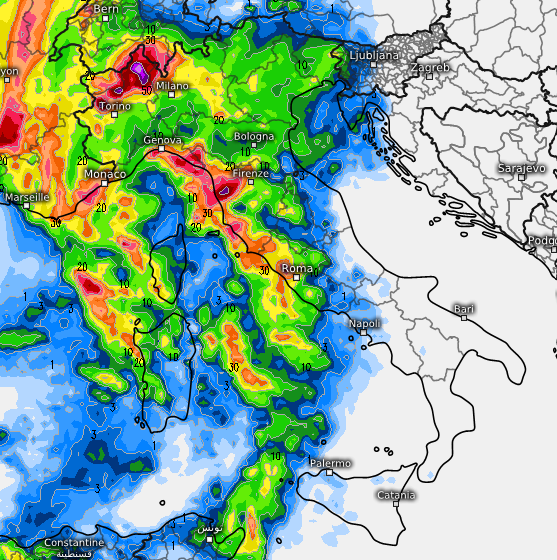 Notate come sempre gli accumuli più rilevanti su Ossola, costa ligure di levante, alta Toscana.