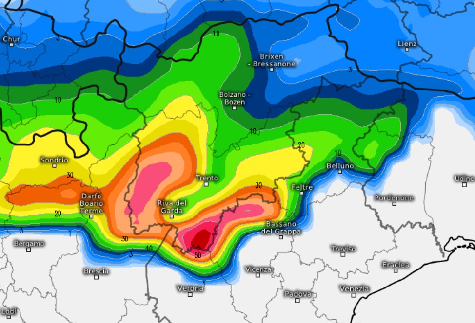 Neve anche sul nord-est, generalmente oltre i 600-1.000m ma decisamente meno abbondanti rispetto al nord-ovest, specie sulle Alpi. Nella provincia di Bolzano e Bressanone e in Friuli infatti i quantitativi di neve fresca che cadrà saranno mediamente scarsi: