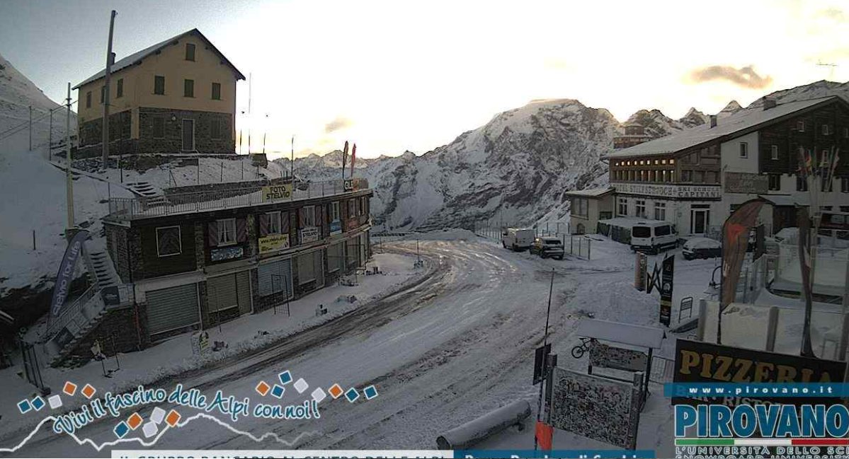 Risveglio tipicamente invernale in questo 24 ottobre al Passo dello Stelvio, i 5cm di neve delle ultime ore hanno cambiato volto al paesaggio e creato non pochi disagi agli automobilisti in cerca di avventure sul ghiaccio. Le strade sono una lastra dai 2400m in su e non è facile guidare senza gomme da neve o catene in cima al passo. La temperatura si aggira sui -8°C, per sabato e domenica attese altre spruzzate di neve: