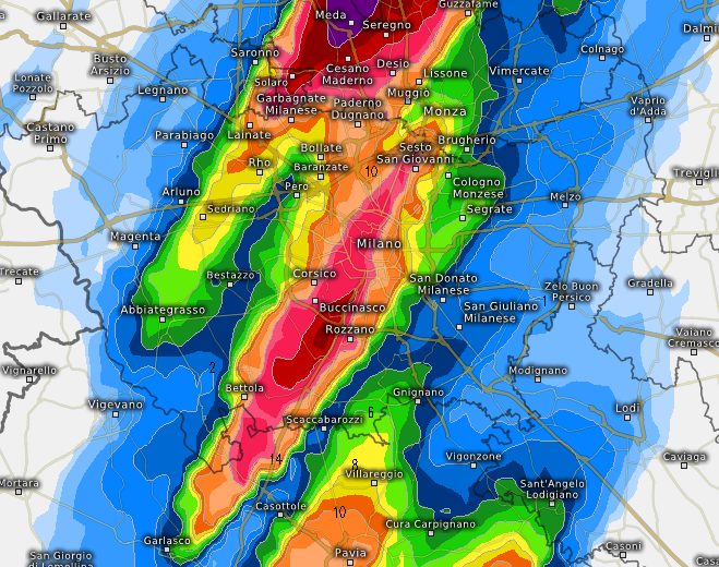 La linea temporalesca dovrebbe attivarsi sul Novarese nel tardo pomeriggio e poi puntare verso est colpendo un po’ tutta la Lombardia a partire da ovest, con fenomeni che, dopo aver colpito Milano, andrebbero ad investire Bergamo e Brescia e poi nella bassa il Lodigiano, il Cremasco e il Cremonese.