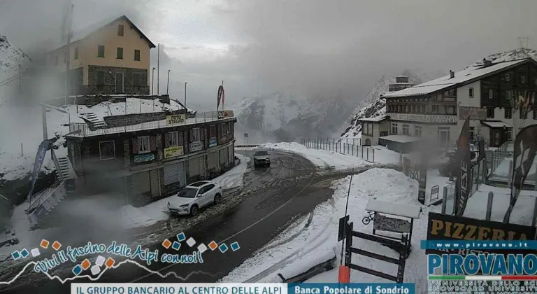 C’è una pausa sul Passo dello Stelvio dopo la nevicata di questa mattina. Nelle prossime ore il fronte freddo porterà rovesci di neve moderati, a tratti anche forti, abbassando il limite della neve fino a 1600m prima che intervenga un netto miglioramento delle condizioni atmosferiche entro la nottata, con temperature che scenderanno di alcuni gradi sotto lo zero.