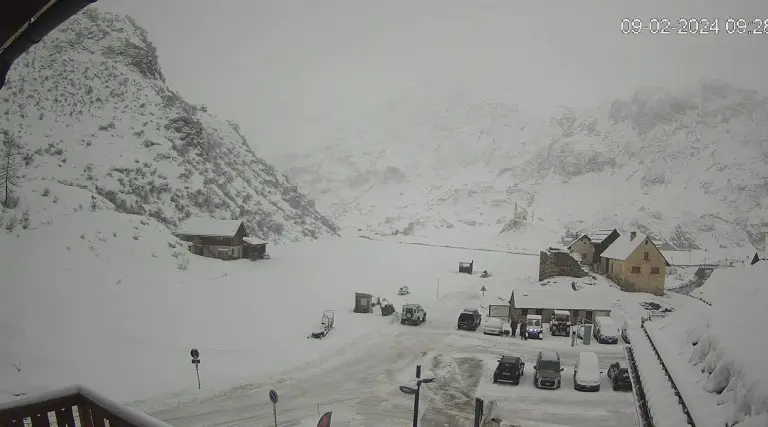 Su diverse vallate valdostane, dai 1500m in su sta nevicando, sia pure non intensamente, qui sotto siamo in Valgrisenche e ormai lo scenario è tornato ad essere prettamente invernale. Bella nevicata anche ai 1718m di Riale, in alta Valle Formazza, la frazione più settentrionale del Piemonte.