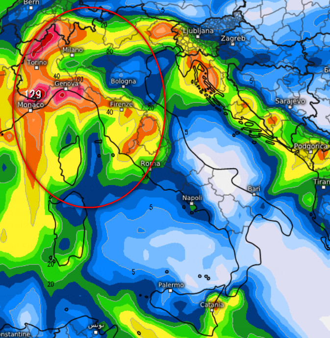 I massimi di pioggia, secondo l’ultimo aggiornamento, saranno ubicati sul settore di nord-ovest, in modo particolate su Liguria, Val d’Aosta, alto Piemonte ed Alpi occidentali. Piogge di un certo peso cadranno anche sulla Toscana e sul Friuli.