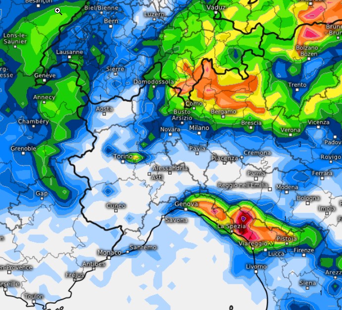 La prima mappa è riferita ai fenomeni di venerdì 27 e più o meno conferma quanto già illustrato in molti nostri aggiornamenti degli ultimi giorni, con piogge concentrate su Alpi e Prealpi Lombarde e Liguria di Levante: