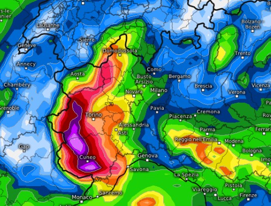 Diversi modelli ad area limitata puntano il dito soprattutto sulle città piemontesi, laddove oltre al vento sostenuto, cadranno forti piogge per tutta la giornata.