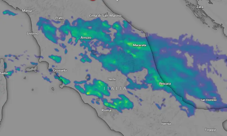 L’afflusso di aria più fredda da est sta penalizzando soprattutto le regioni centrali, dove sono in atto delle piogge organizzate tra le zone interne della Toscana, il Maceratese nelle Marche e il Pescarese in Abruzzo, il tutto accompagnato da una sostenuta ventilazione orientale, che peraltro seguita ad investire anche il settentrione, favorendo una diminuzione anche importante delle temperature.