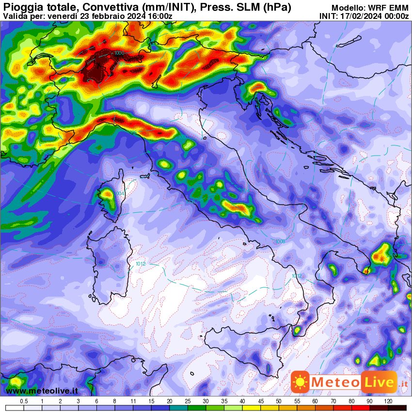 Di conseguenza anche la rappresentazione del tempo previsto per il 23 febbraio attraverso le nostre icone del tempo, mostra tanta pioggia in arrivo: Previsione Meteo – MeteoLive.it