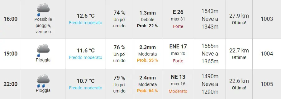 Se poi sei curioso, qui puoi vedere i dettagli di funzionamento delle nostre previsioni meteo e capire perchè sono fra le più precise e affidabili: Le previsioni meteo di MeteoLive: massima affidabilità, ecco perchè