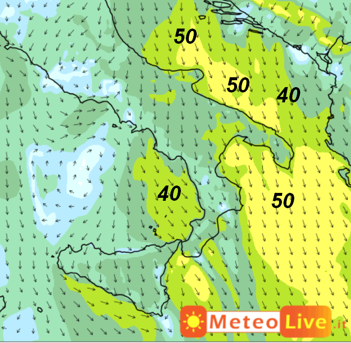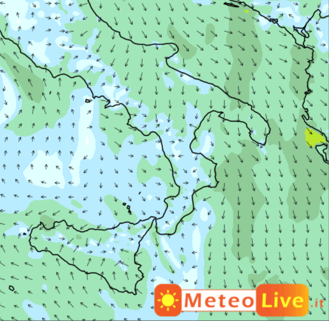 Nella giornata di giovedi 9 ottobre la ventilazione, pur mantenendo sempre direzione settentrionale, tenderà a spegnersi un po’ su tutto il meridione: