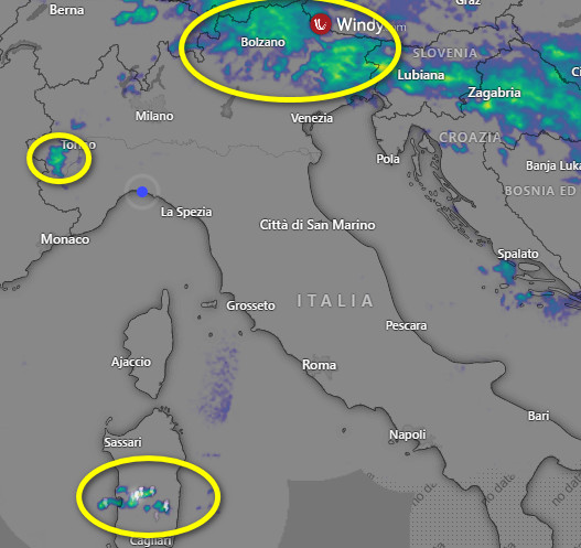 I rovesci più consistenti sono in atto sulle Alpi orientali. Qualche rovescio è presente anche sull’ovest Alpi e qualche temporale a base alta nelle aree interne della Sardegna, per il resto il tempo è buono.