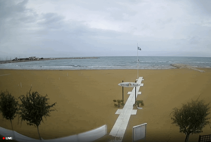 La RIFLETTIVITA’ del RADAR mostra rovesci in azione questa mattina tra le Marche, l’Abruzzo e il Molise. Un deciso miglioramento è intervenuto invece al nord. Nella foto il litorale di Pescara.