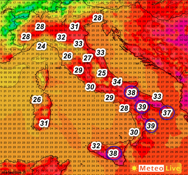 38-39° sono attesi su alcune aree del meridione dove l’aria africana non mollerà ancora la presa. Andrà meglio sul resto d’Italia, compresa la Sardegna, dove l’aria africana verrà sostituita dalle correnti meno calde occidentali. Anche il disagio da caldo si manterrà elevato al sud, mentre sulle restanti regioni tenderà a calare.