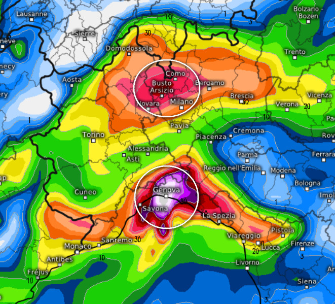Oltre alla Liguria centrale ci sarà da tenere d’occhio, sul fronte delle piogge, anche l’alta Lombardia.