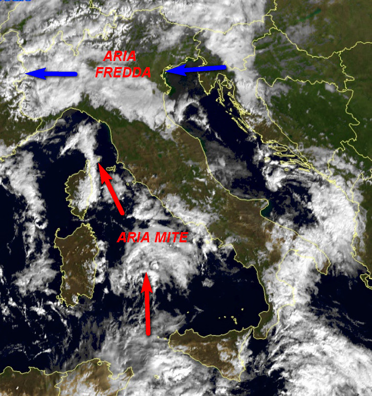 SATELLITE: due masse d’aria che si scontrano sull’Italia
