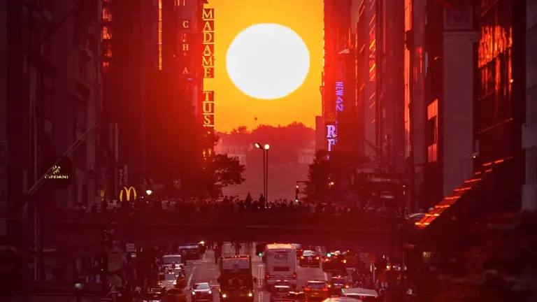 La parola nasce dall’unione di Manhattan e Stonehenge, il sito neolitico in Inghilterra con le pietre allineate al sole durante i solstizi. Lo si può vivere tra il 28 e il 29 maggio e tra il 13 luglio e il 14 luglio. Ecco un estratto dalla CBS che mostra newyorkesi e turisti che si riversano sulla 42esima strada per ammirare questo momento magico.
