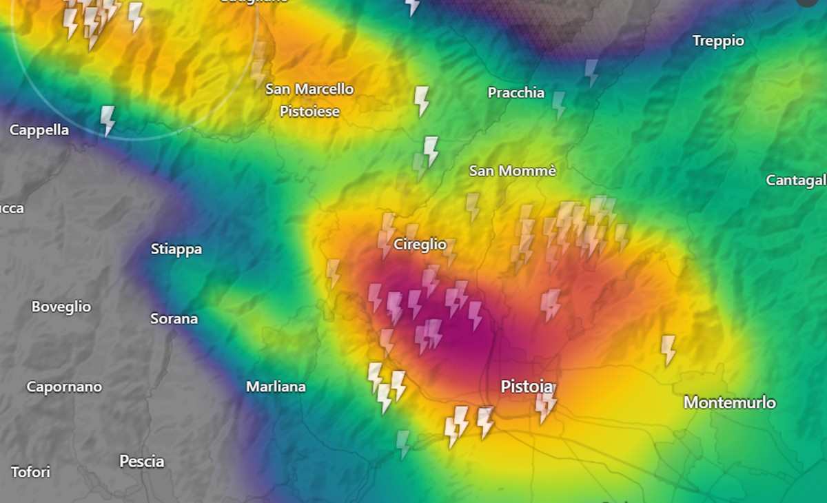 TEMPORALE investe Pistoia, la traiettoria prevista