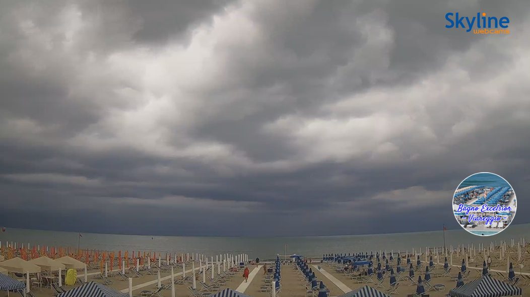 Qui sotto la situazione di pochi minuti fa a Viareggio con il temporale che incalza dal mare:
