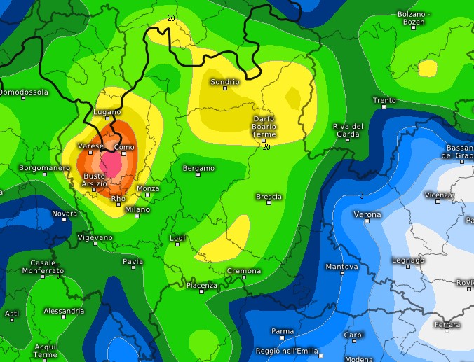 Altri modelli, invece, puntano il dito verso la pianura lombarda, in particolare l’alta pianura tra Milano, Varese e Como. Qui, l’instabilità potrebbe trovare terreno fertile grazie all’umidità stagnante e alle temperature elevate, con il rischio di temporali intensi e localizzati, accompagnati da grandine e raffiche di vento.