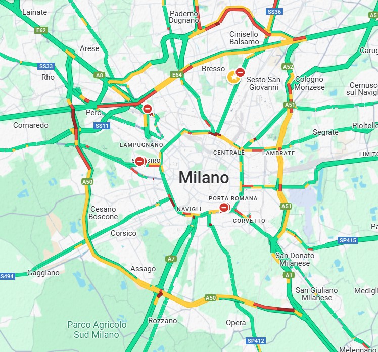 Ecco la situazione attuale delle ore 10:40, orario nel quale solitamente il traffico è basso: