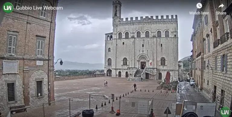 Una linea di temporali sta scendendo dalla Toscana verso l’Umbria, ha già coinvolto Perugia e Gubbio (nella webcam) e a breve colpirà Orvieto, dove c’è ancora il sole, così come un nucleo temporalesco molto intenso sconfinerà sulla costa di Sirolo nelle Marche, qualche km a sud di Ancona. Il pomeriggio dovrebbe regalare temporali a gran parte del Lazio e dell’Abruzzo. Turisti ancora ignari a Sirolo (webcam sotto) ma il temporale li colpirà alle spalle, sorprendendoli e costringendoli alla fuga.