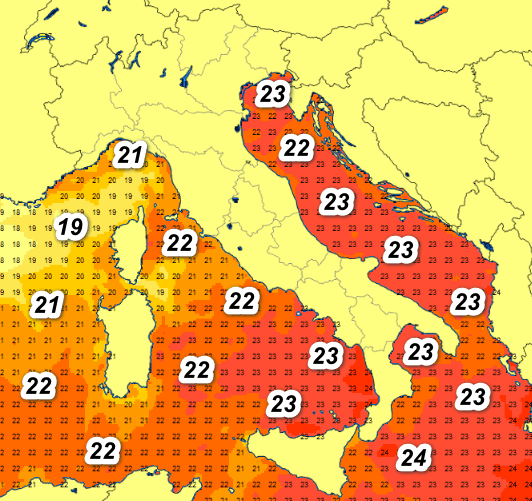 Ecco le temperature del mare rilevate nelle ore centrali della giornata di ieri, giovedi 13 giugno:
