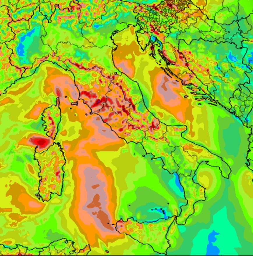 Parallelamente, si assisterà a un progressivo aumento del vento. Le prime regioni a essere investite saranno quelle del versante occidentale. A partire dalla sera, le raffiche di Scirocco raggiungeranno velocità considerevoli, potendo toccare i 70-80 km/h su gran parte dei bacini tirrenici e sul Mar Ligure. In queste aree, la direzione del vento tenderà a disporsi gradualmente dai quadranti orientali, segnalando un’evoluzione del quadro sinottico.