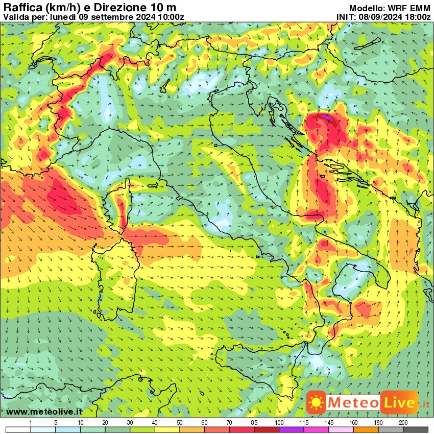 Vento scatenato lunedì 9 settembre su mezza Italia: ecco dove